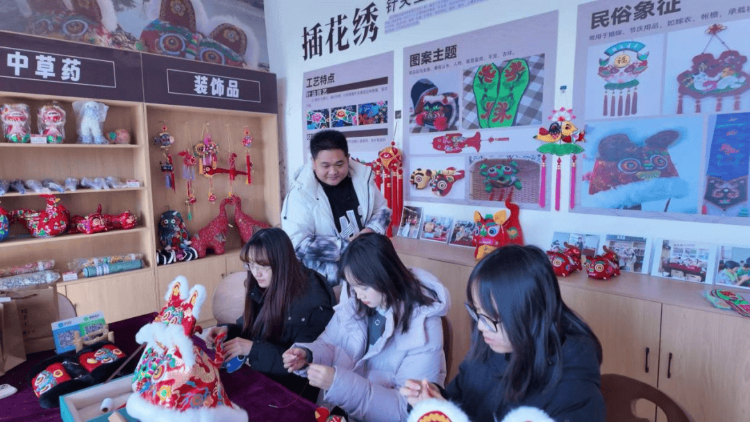 文化赋能让旅游更有深度。在插花绣坊,“00 后” 传承人江昊霖向队员们介绍,自己放弃了城市工作返乡传承技艺,采用“传承人 + 农户” 的分布式生产网络:由他负责设计、技术指导和订单对接,村内留守妇女利用农闲时间在家加工刺绣品,绣品经过包装后成为热销文创产品,不仅让濒临失传的插花绣 “活起来”,更让村民实现 “一针一线绣出致富路”。煎饼坊里,队员们跟着村民学习摊制沂蒙煎饼,调浆、烧鏊子、起饼的流程看似简单,实则暗藏技巧。在焦香四溢的煎饼香中,村民讲述着 “沂蒙红嫂用煎饼支援前线” 的红色故事,让这道舌尖上的美味成为承载红色记忆的文化符号。黄桃种植园里,种植户为我们介绍,葛庄将黄桃从单一种植拓展为 “鲜果采摘 + 罐头加工 + 果干制作” 的完整产业链,真正实现 “以农促旅、以旅兴农”。