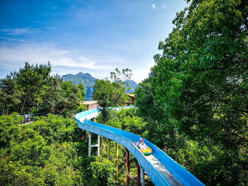 景区的特点丰富多样,能满足不同游客的需求。对于追求刺激的游客来说,刺激体验与游乐项目是一大亮点。步步惊心玻璃桥全长近200米,踏板之间有间隙,走在上面惊险刺激又有惊无险;悬崖秋千让你佩戴保险设备后荡向山间,感受一飞冲天的快感,同时换个角度欣赏美景;高空滑索全长230多米,落差20多米,从山峰一路滑至谷底,体验风驰电掣的速度;激速漂流(彩虹水滑道)是极具特色的森林高空水滑漂流,全长420米,垂直高度115米,两人一组乘坐橡皮艇,在水流冲击下沿滑道滑下山谷,尽情释放激情。