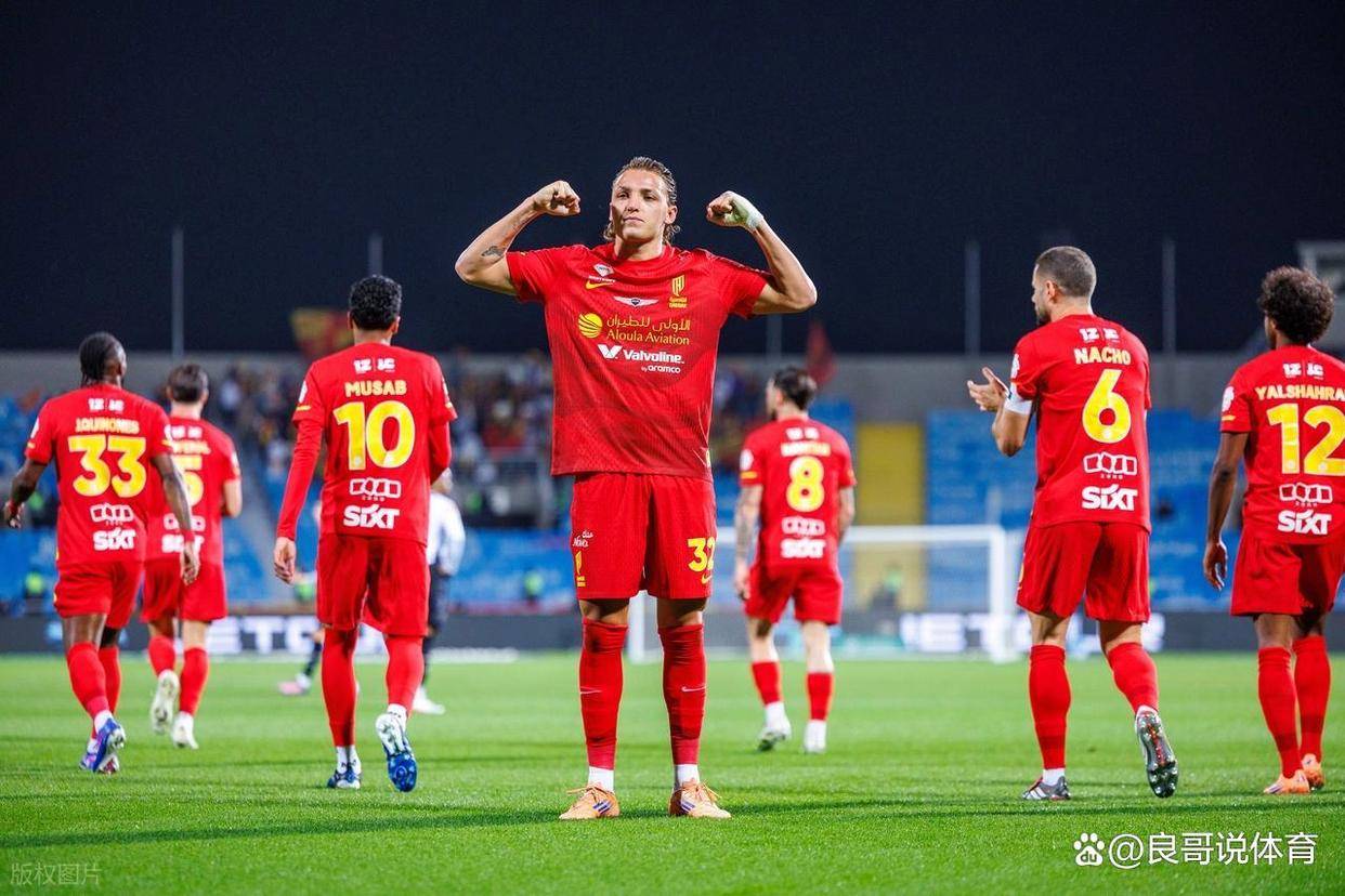 易边再战,场上11打10的局面愈发明显。利雅得新月再次发起凶猛的攻势。比赛第60分钟,利雅得新月从右路发起进攻,亚米突入禁区后回传,禁区前沿的米林科维奇停球调整后,右脚怒射。门将科扎尼扑救脱手,禁区左侧无人盯防的前AC米兰球员特奥抢到落点,以一记凌空左脚扫射,皮球应声入网,2比1,利雅得新月再度将比分超出。比赛进行到第83分钟,利雅得新月在禁区弧顶获得了一次绝佳的任意球机会。经过精妙的战术配合,米林科维奇做球,特奥以一记势大力沉的抽射,皮球穿过人墙,直挂球门左下死角。特奥梅开二度,为利雅得新月锁定胜局,比分最终定格在3比1。